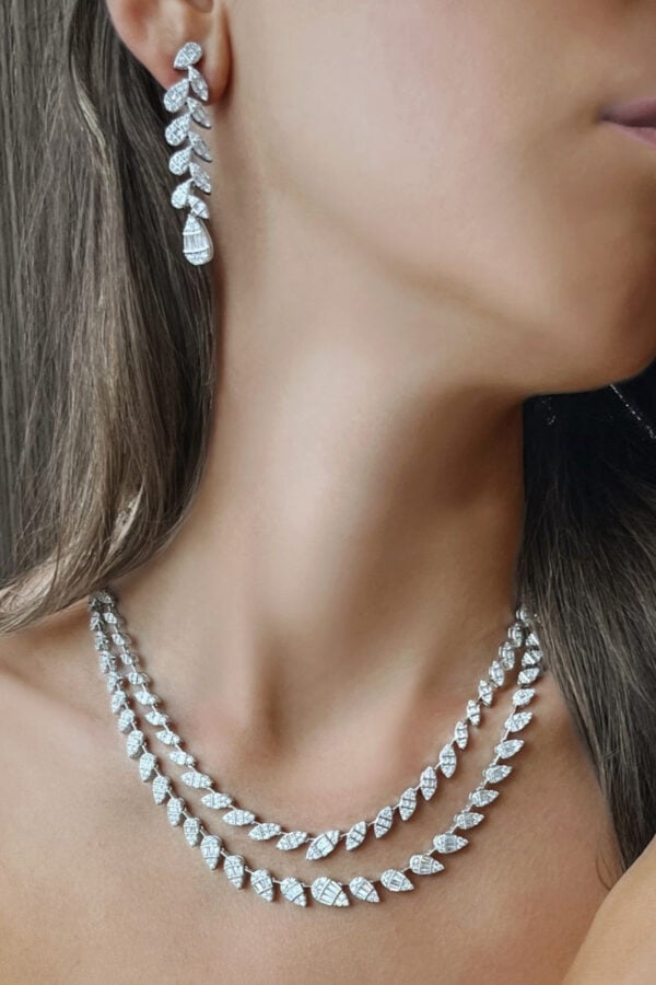 - This beautiful set consists of the Necklace, Bracelet, Ring and Earrings.